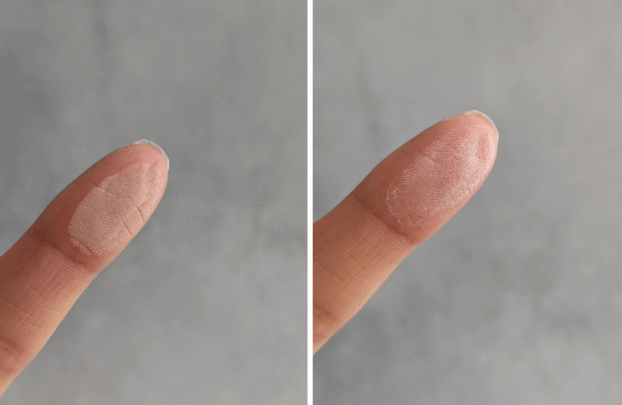写真で見ると、超微差すぎて(笑)写真で撮るためにパフでベタづけしてもこれくらい。実際はブラシを使って塗布するので、ほとんど差がありません。
