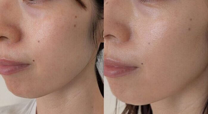 色ムラやくすみが自然に整い、頬まわりのほうれい線までふわっとカバーされ、全体的にハリ感が出たような仕上がりに。